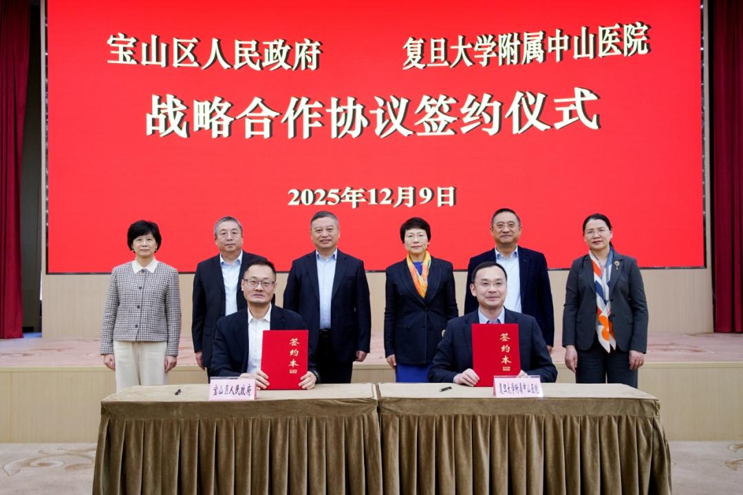 会上,两边签署《上海市宝山区东谈主民政府与复旦大学附庸中山病院政策互助合同》。